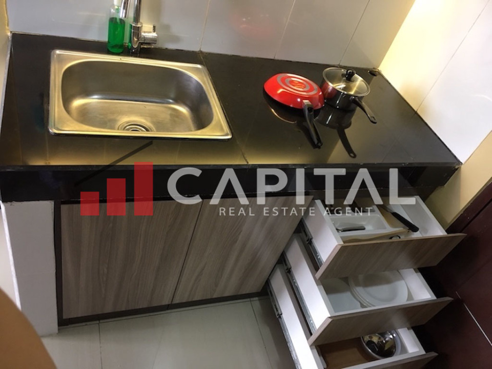 Kitchen : kitchen Cabinet (Top & drawer below), single burner stove (elpigi tank), electric kettle, rice cooker, Refrigerator, basic cooking utensil, 1 acrylic painting (decoration)