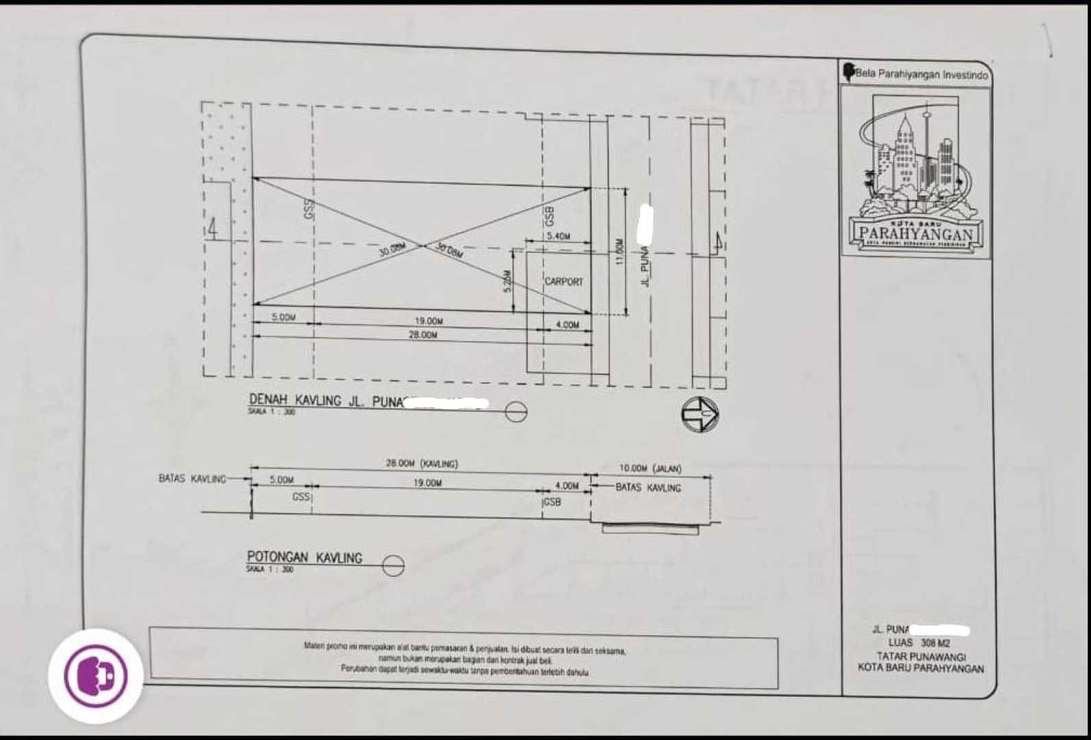 Luas Tanah : 308m2